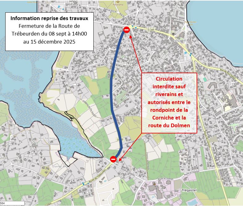 Fermeture de la Route de Trébeurden du 8 septembre 2025 à 14h au 15 décembre 2025.
