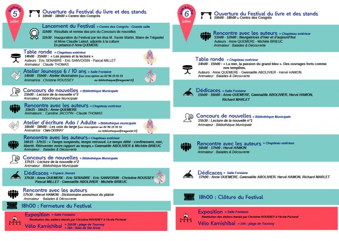 Le programme complet des 2 jours du festival du livre et de la lecture de Trégastel
