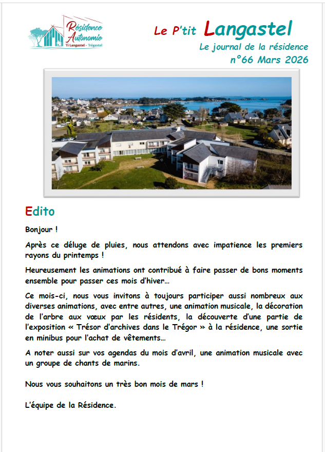 La "Résidence Autonomie Ti Langastel" (établissement non médicalisé) est une structure d’hébergement qui accueille les personnes âgées autonomes de plus de 60 ans.